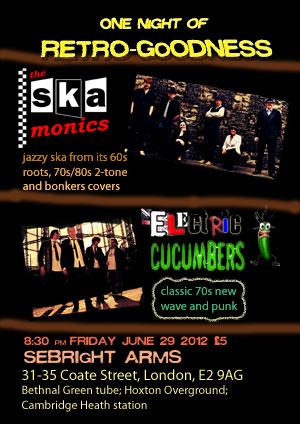 Poster Sebright ArmsWe are playing with our friends in the Electric Cucumbers – indeed we are so friendly that we let Frank, our guitarist, play the bass for them.